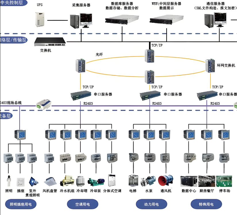 能耗管理系統(tǒng)是一種基于物聯(lián)網(wǎng)和大數(shù)據(jù)技術的創(chuàng)新管理系統(tǒng),旨在通過實時監(jiān)測和智能分析,實現(xiàn)對建筑物能耗的精細化管理和優(yōu)化。下面將介紹智慧能耗管理系統(tǒng)的系統(tǒng)架構組成。