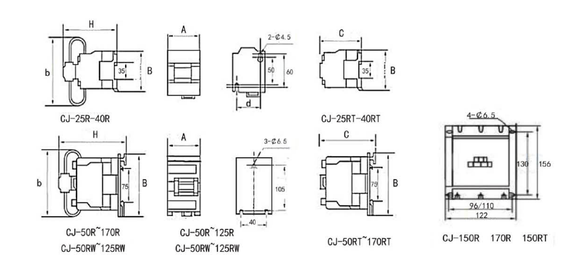·CJ-18R~CJ-40R提供兩對(duì)輔觸頭,可選1開(kāi)1閉代號(hào)11型 或2開(kāi)代號(hào)20型,默認(rèn)11型。 ·CJ-50R~CJ-125R提供三對(duì)輔觸頭,全部為2開(kāi)1閉代號(hào)21型(可省略)。 ·CJ-150R 170R提供一對(duì)常開(kāi)輔助觸頭。? ·RT型產(chǎn)品沒(méi)有限流機(jī)構(gòu)和限流阻抗,必須工作在串接電抗器的回路中。 ·25kvar~60kvar 可選配外引接線(xiàn)式,下單清注明。 |