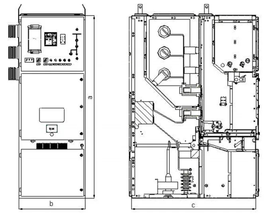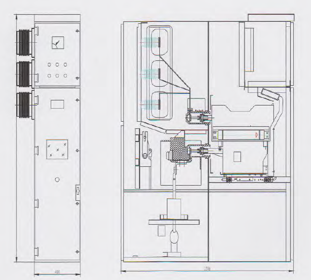 外殼為IP4X(最高可到IP43),隔離間,斷路器室門打開(kāi)時(shí)為IP2X |