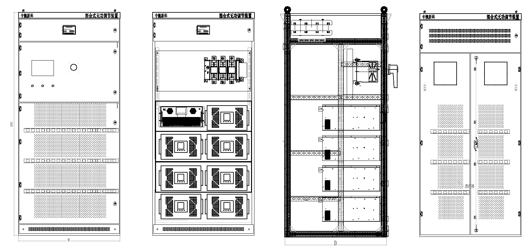 模塊設計;混合式無功補償裝置采用模塊化組裝工藝,結構簡單合理,模塊組裝互換通用性強,可實現(xiàn)多種補償方案組合的標準化生產(chǎn)。