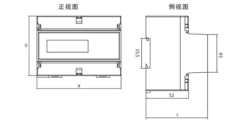 標(biāo)準(zhǔn)35mm導(dǎo)軌安裝,大規(guī)模集成電路設(shè)計(jì),體積小、安裝方便。