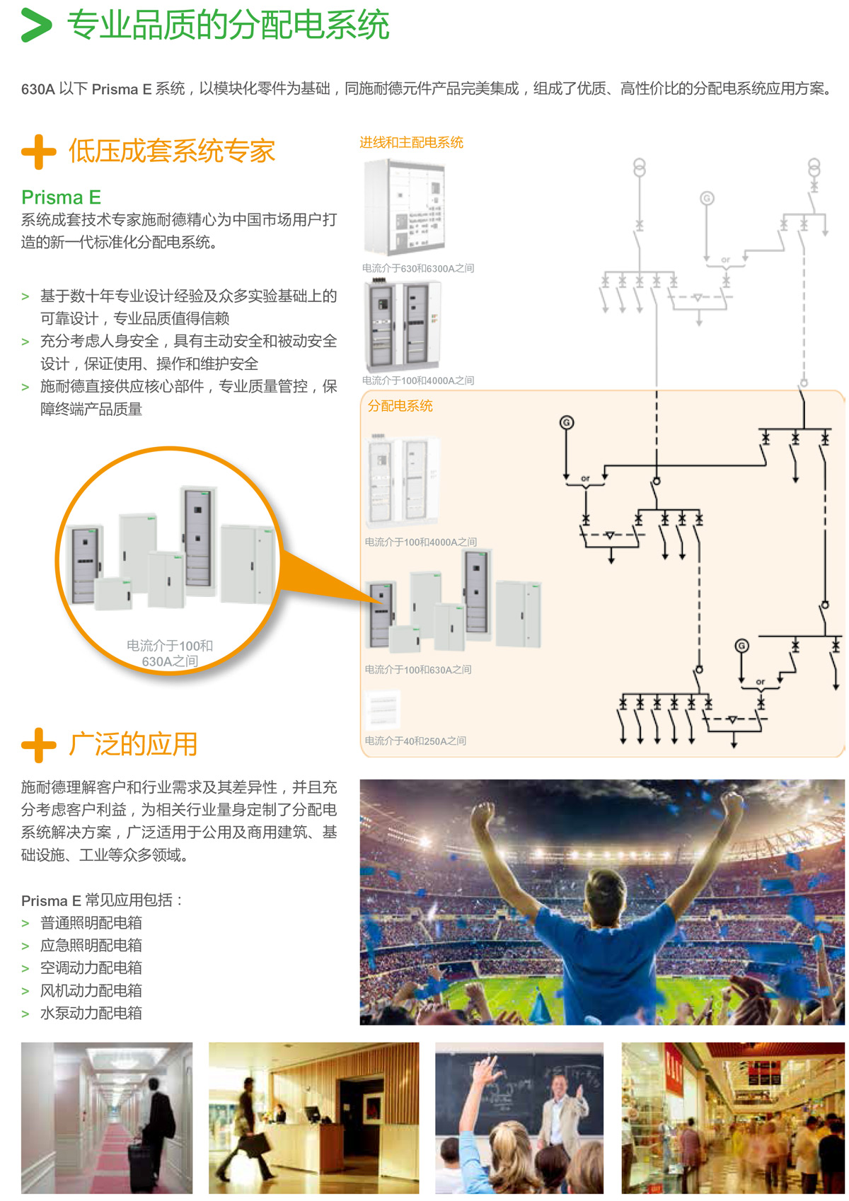 Prisma E配電箱是施耐德授權中航新科電氣生產(chǎn)的低壓開關設備。精心為中國市場打造的新一代低壓配電箱產(chǎn)品。Prisma E適用用630A及以下的低壓分配電系統(tǒng),以模塊化零件為基礎,同施耐德元件產(chǎn)品完美集成,組成了優(yōu)質(zhì)、高性價比的標準化分配電系統(tǒng)應用方案。Prisma E開關柜廣泛應用于醫(yī)院,學校,數(shù)據(jù)中心,體育場館,工廠等領域。Prisma E開關柜常見的應用包括:普通照明配電箱,應急照明配電箱,空調(diào)動力配電箱,風機動力配電箱,水泵動力配電箱,智能照明配電箱,PLC控制柜,變頻啟動柜等。