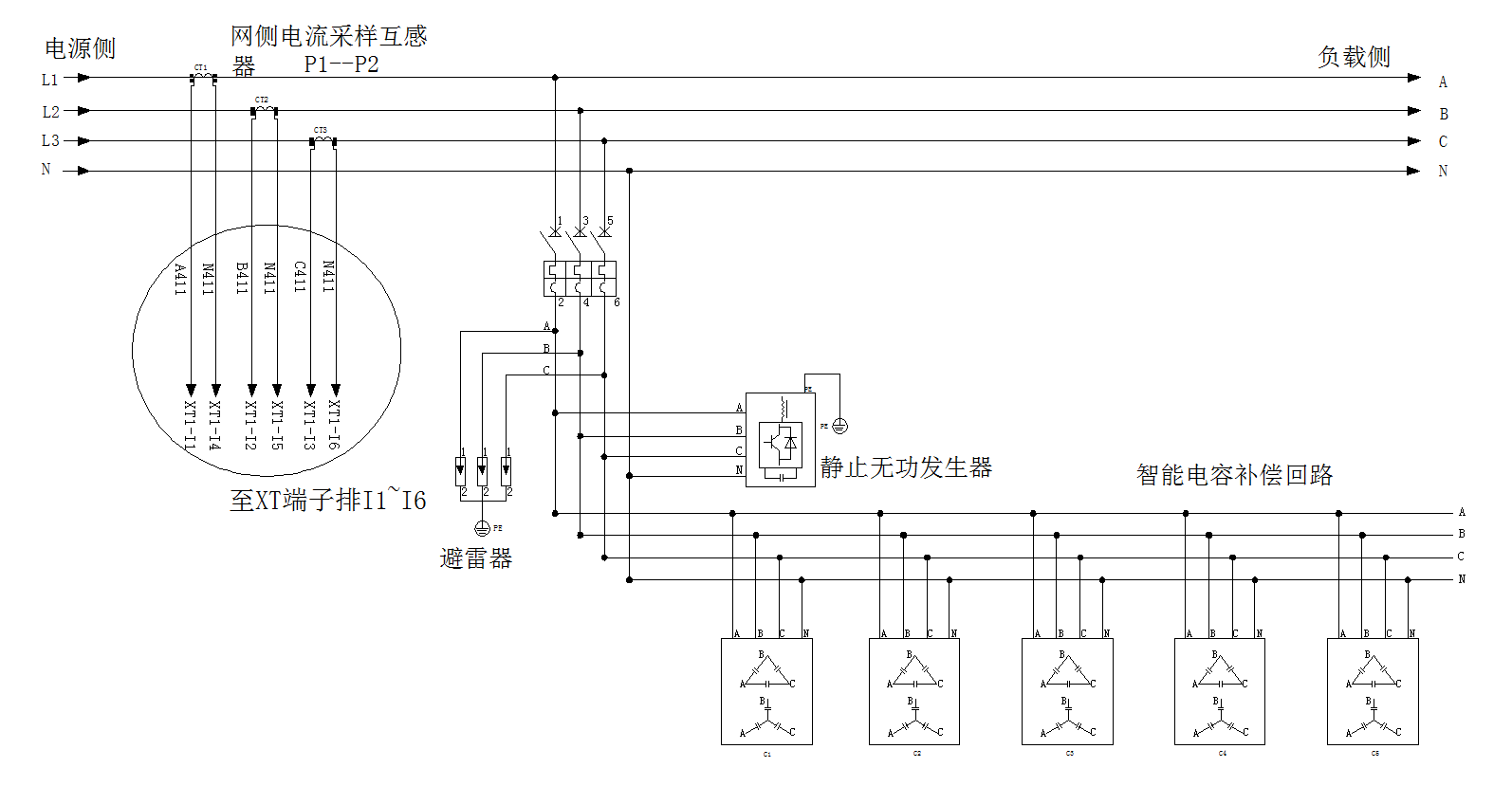 線路調(diào)節(jié):能夠解決系統(tǒng)三相負(fù)荷不平衡的問題,不僅不產(chǎn)生諧波,而且能在補(bǔ)償無功功率的同時(shí)動態(tài)的補(bǔ)償諧波;